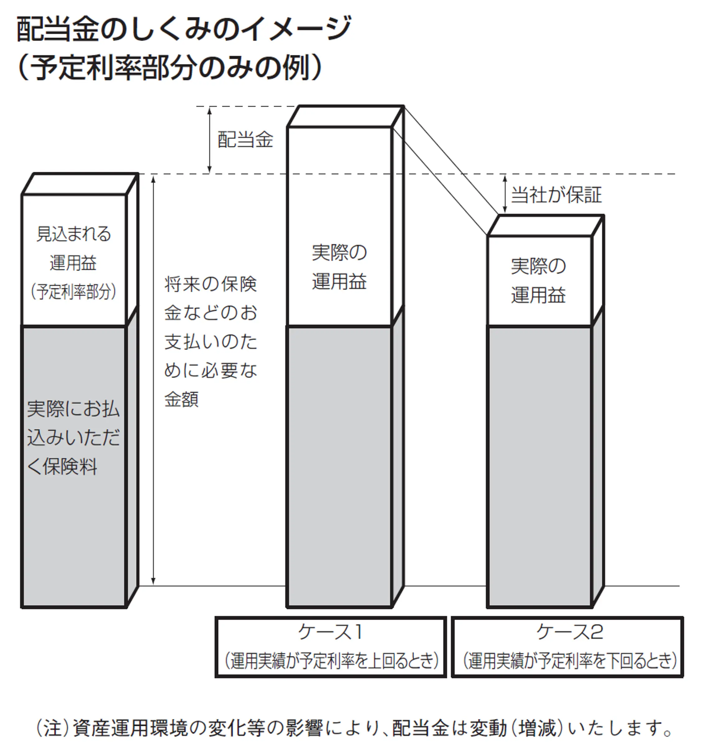 そして、この見込まれる運用益よりも運用の実績が上回ったときに利差益配当をお支払いします。…【下図ケース1】
