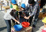 作業は、職員・親の会・子供たちとの手作りで進めています。「我慢が出来ない」「状況が読めない」子供たちのはずなのに、長時間の作業にもかかわらず、しっかりとそれぞれの役割を果たしています。