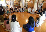 県外の方々との交流もありました。ホームページで活動の様子や受賞のことを知った、鹿児島県沖永良部島からの講師要請があり、出前講座に出かけました。沖縄県外からの要請は始めてでした。出前講座をきっかけに、受講したメンバーは、沖永良部のわらべうたで子育てをするため活動を始めたとのことです。