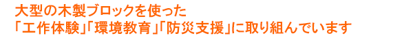 「工作体験」「環境教育」とともに、私たちの活動の大きなテーマになっているのが「防災支援」です。特別な工具を用いることなく、誰でも簡単に組み立て・作り直しができる「つみっく」は、災害時にも大活躍します。私たちが東北の避難所に届けた「つみっく」も、子どもたちの遊び場としてはもちろん、更衣室やFM 局のブースなど、さまざまな用途で活用されています。