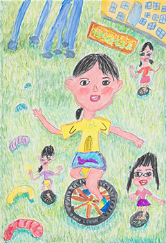 - 「みんな一りん車のれたよ。」