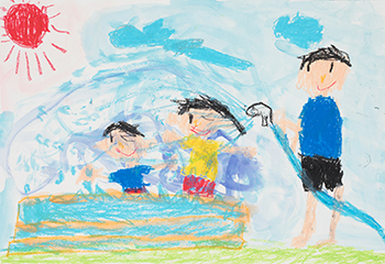 「水あそびってたのしいね!」