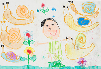 - 「カタツムリのおやこ見つけたらえがおになったよ」