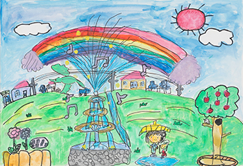 - 「ふしぎなふんすいでみんながえがおになるまち!!」