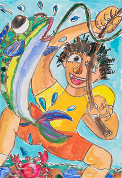 - 「大きなさかながつれたよ!」
