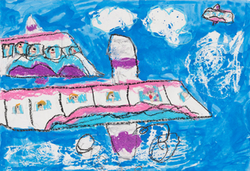 - 「ひこうきにのったよ〜」