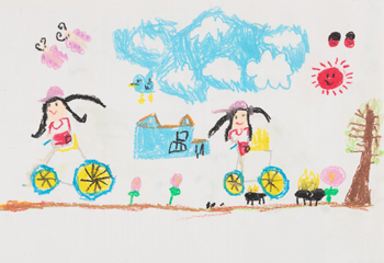 - 「保育園でお友達と自転車であそんでいるところ」