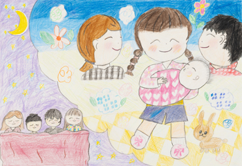 - 「家ぞくが、ふえたよ。」