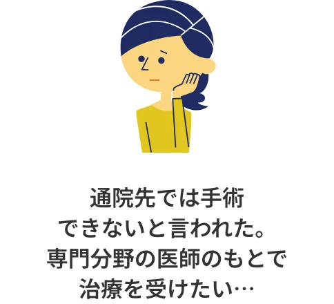 主治医が自身では治療・手術ができないと判断したケースで、手配先の医療機関にその分野の医師が在籍し治療可能な場合に、受診の手配をします。