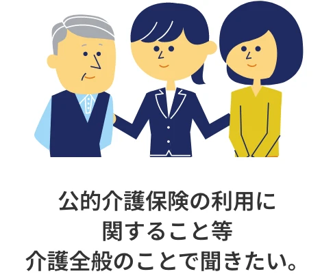 電話で介護・認知症に関する相談ができるサービスです。また、ご要望に応じて介護関連サービスをご案内いたします。