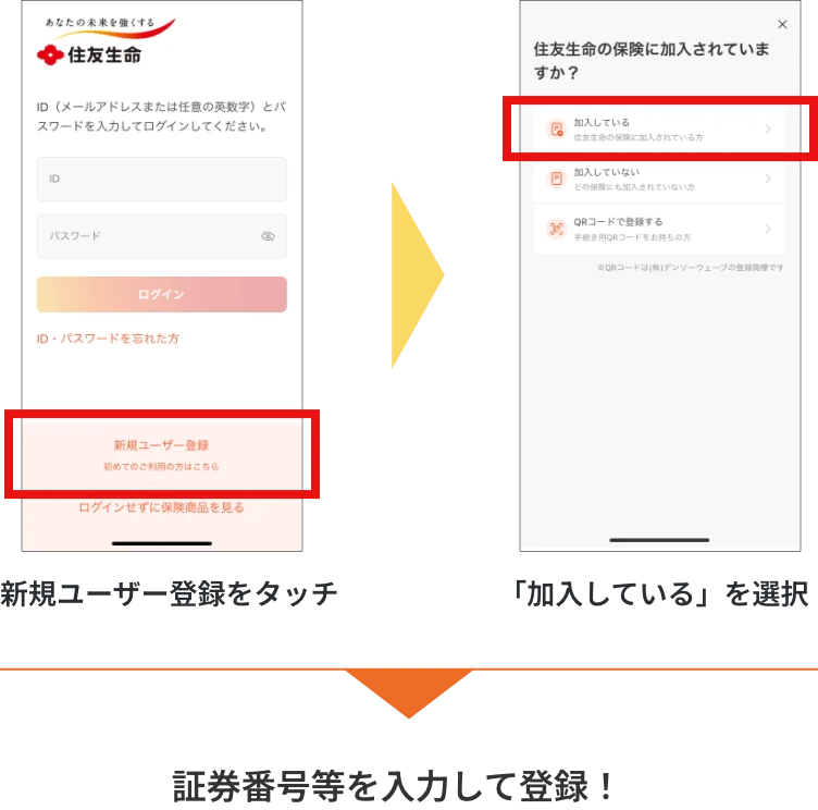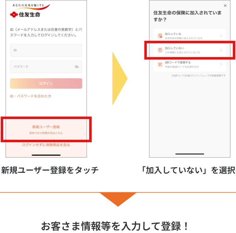 スミセイ・デジタルコンシェルジュの初回登録が必要です。本登録を行うと、同時にスミセイダイレクトサービスもご登録となります。
