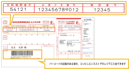 払込取扱票にバーコードが記載されている場合、コンビニエンスストアのレジからもご入金いただけます。コンビニエンスストアからのお払込みは30万円までです。