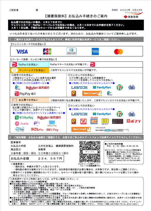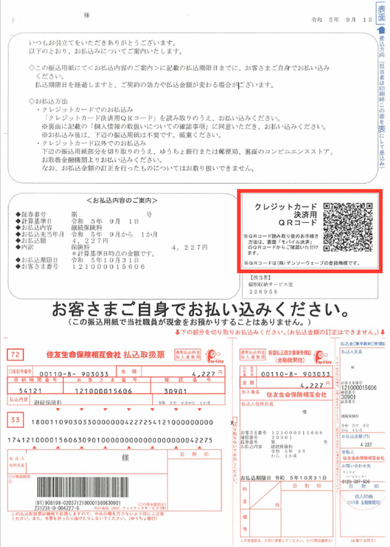 - ・立替返済、貸付返済、ファンド一時投入保険料を含む、一部保険料にはご利用できません。(利用できない場合、QRコードが表示されておりません。)