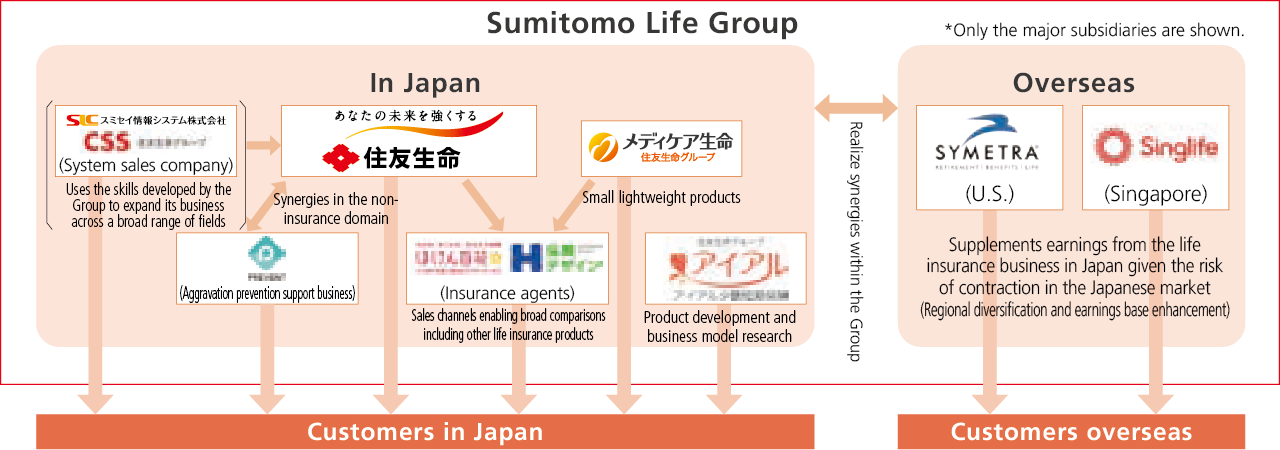 The Sumitomo Life Group is made up of subsidiaries and associates in Japan and overseas involved in life insurance, small amount and short-term insurance, insurance-related operations, asset management-related operations, and other businesses.