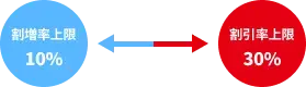 - 割引率の上限は30%、割増率の上限は10%です。
