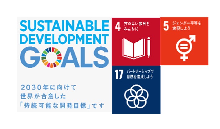 住友生命では社会貢献活動における重点分野の1つとして本プロジェクトを推進し、SDGs17の目標のうち「④質の高い教育をみんなに」「⑤ジェンダー平等を実現しよう」「⑰パートナーシップで目標を達成しよう」の達成にも貢献していきます。