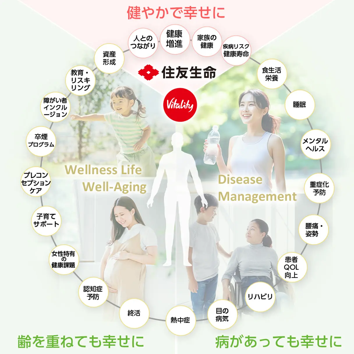住友生命は、「Vitality」をはじめとするさまざまな取組みを通じて、