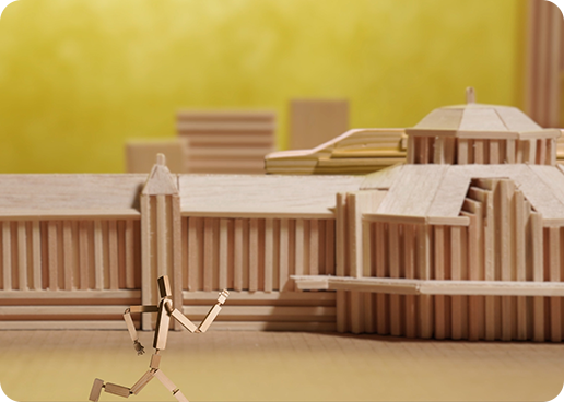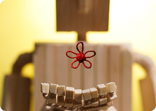 映像では、木のアーチのエントランスからはじまり、ひとつの木が命を宿し、歩き、走り、泳ぎ、困難も楽しく乗り越えます。実際、ストップモーションアニメーションという、根気のいる撮影で制作いたしました。